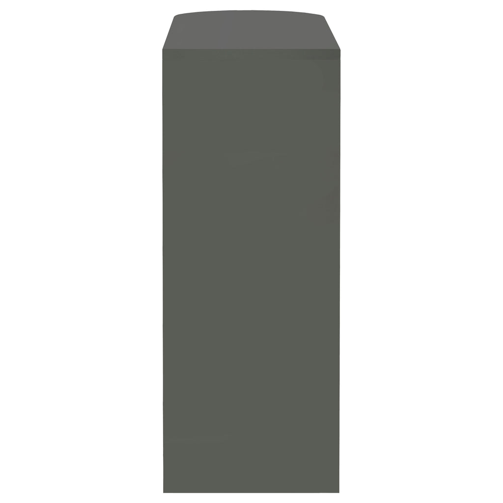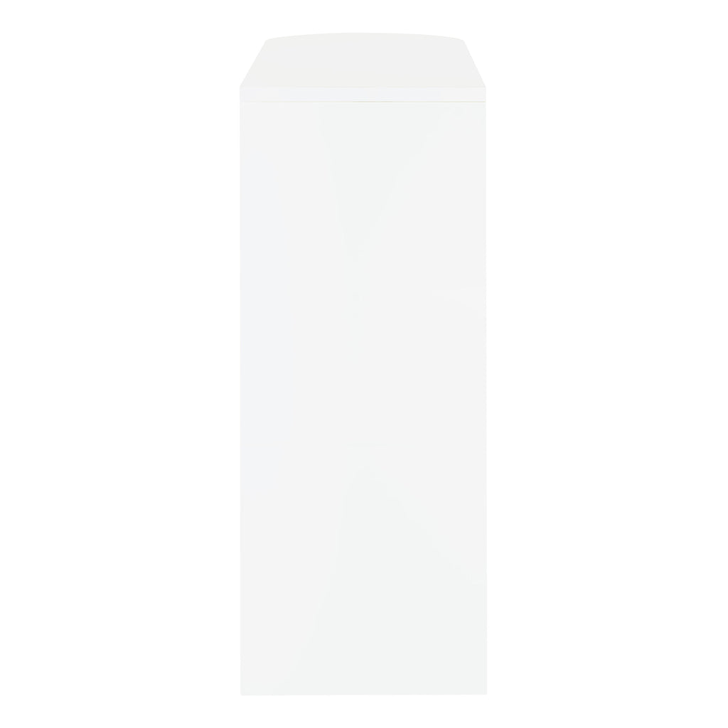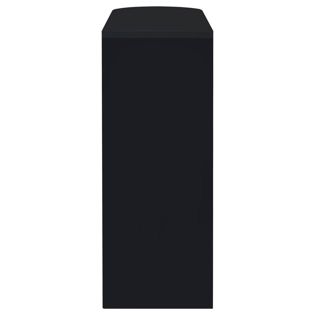 This stylish bar unit is a fabulous option for your entertaining needs. A sleek silhouette and glossy black finish give it a chic, modern appeal. Its tempered glass storage shelves offer a handy place to display a collection of fine wines and spirits. Protective guardrails help prevent accidental spills and keep bottles safe and secure. A handy stemware rack rounds out the versatile convenience of this contemporary bar unit. Key Features: • Rounded end adds an elegant feel to this glossy black bar unit • Clear tempered glass shelf adds stability for your choice of spirits • Storage features include two (2) tiers of shelving, including one (1) glass shelf with guardrails, and stemware racks • Steel, MDF, and laminate construction • Your choice of glossy black, glossy white, or glossy grey