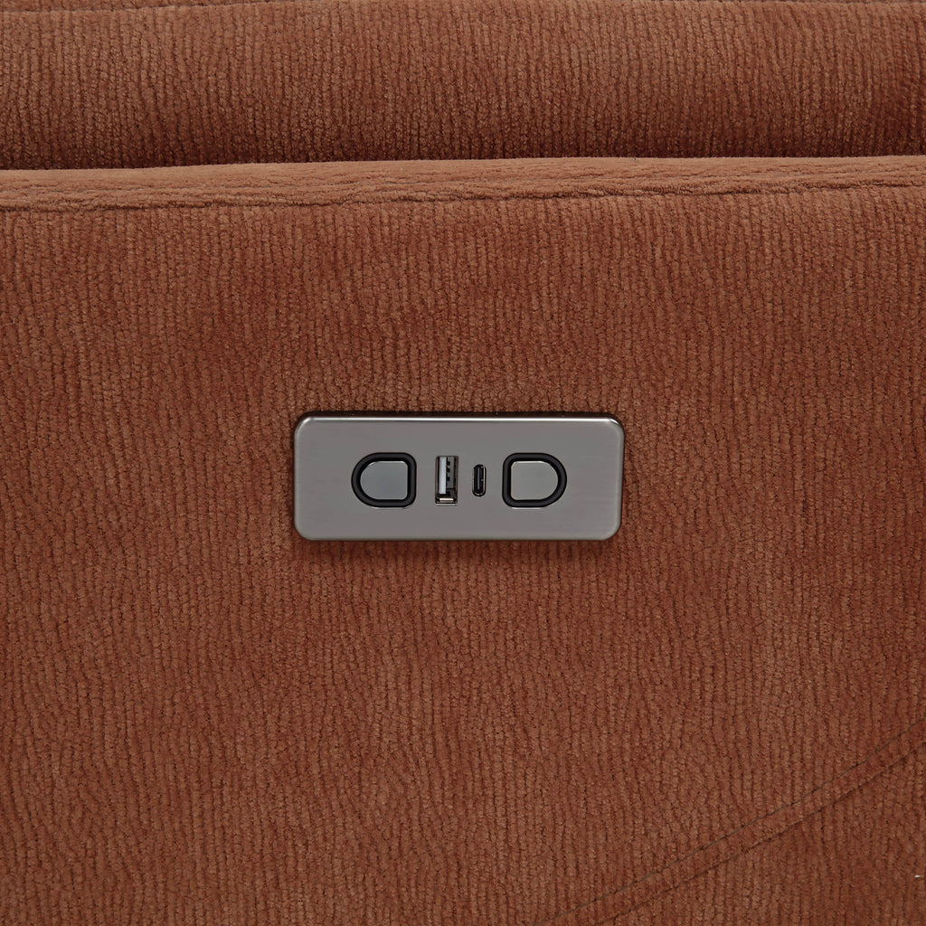 Relaxation meets innovation in this power swivel glider recliner, designed for effortless comfort. A smooth power recline mechanism lets you find your perfect position, while a built-in control panel with USB-A and USB-C charging keeps devices powered within reach. Upholstered in soft fabric over plush foam cushioning, it features gentle gliding and 360-degree swivel motion for versatile lounging. Ideal for modern living rooms, nurseries, or reading corners. Key Features: • Swivel glider recliner features power recline for effortless, adjustable comfort • Upholstered in soft ivory fabric with plush foam cushions for all-day relaxation • Smooth glider base combines with 360-degree swivel for full-range motion • Control panel includes dual USB ports (USB-A and USB-C) for device charging • Durable frame crafted from plywood for lightweight strength and support • Perfect for living rooms, nurseries, or compact lounge spaces with modern needs