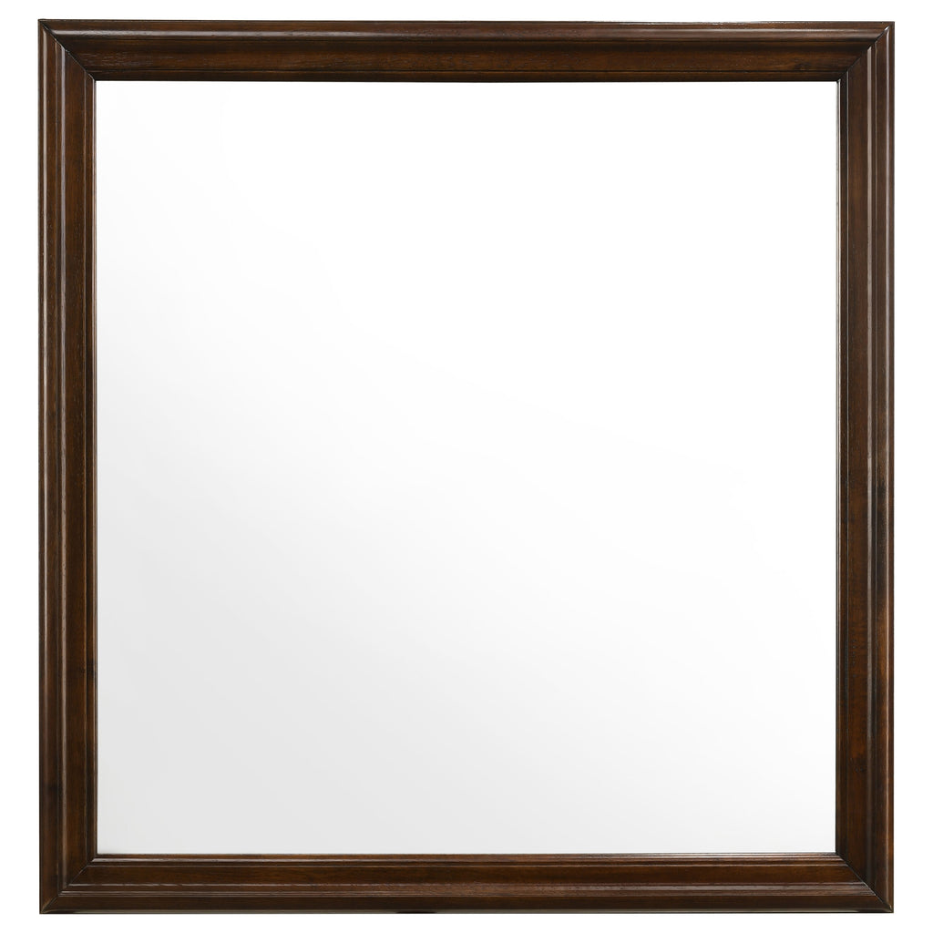 The Louis Philippe collection is highlighted by this 4-piece bedroom set that is perfect for the guest bedroom or youth bedroom. The Full bed (also available in Eastern King, Queen, and Twin) is characterized by a high headboard and low footboard, both with slightly flared styling. The nightstand and dresser have deep drawers with dovetail construction and silver bail handles for convenient pull-out and stylish appeal. Place the impressive rectangular mirror fits upon the dresser to complete the look. Built from select hardwoods and wood veneer, this traditional-style set comes with a cappuccino finish that adds a warm ambiance to the bedroom. Key Features: • A slightly higher headboard distinguishes this classic Louis Philippe style bed • Nickel finish bail drawer handles decorate drawer fronts • Dovetail drawer construction creates a sturdy drawer foundation • Crafted from rubberwood and okume veneer • Headboard only options are available to use with metal bed frames