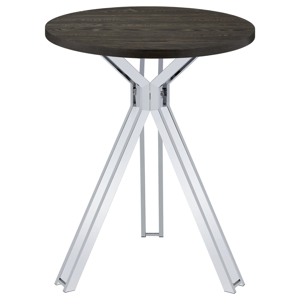Edgerton Round Wood Top Bar Table Dark Oak and Chrome