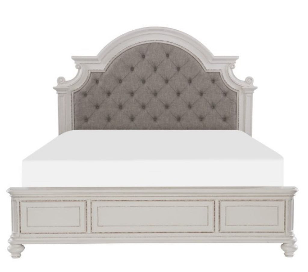 Homelegance Baylesford Queen Upholstered Panel Bed in Antique White 1624W-1*