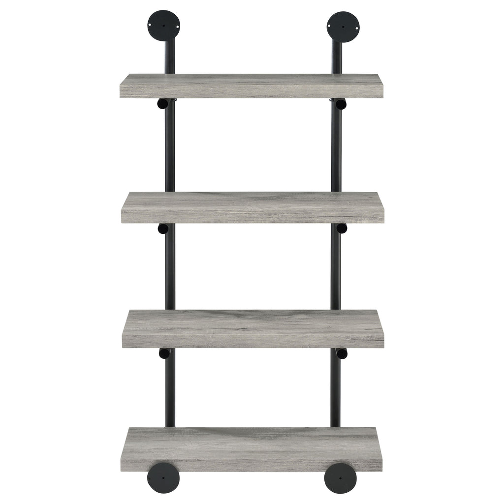 This wall-mounted bookshelf blends industrial charm with practical design. Supported by a black plumbing pipe frame, it features four open shelves that provide ample room for books, décor, or office supplies. With its vertical orientation, this compact shelf maximizes storage while conserving floor space. Constructed from engineered wood, laminate veneer, and sturdy metal, it offers durability and strength, making it a versatile addition to any living room, bedroom, or office. Key Features: • Industrial wall-mounted bookshelf in rustic oak with black pipe frame • Four open shelves provide space for books, décor, and office storage • Durable black plumbing pipe frame enhances industrial style appeal • Vertical design maximizes storage capacity without taking floor space • Crafted from engineered wood, laminate veneer, and heavy gauge metal • Versatile piece works well in a bedroom, living room, or home office