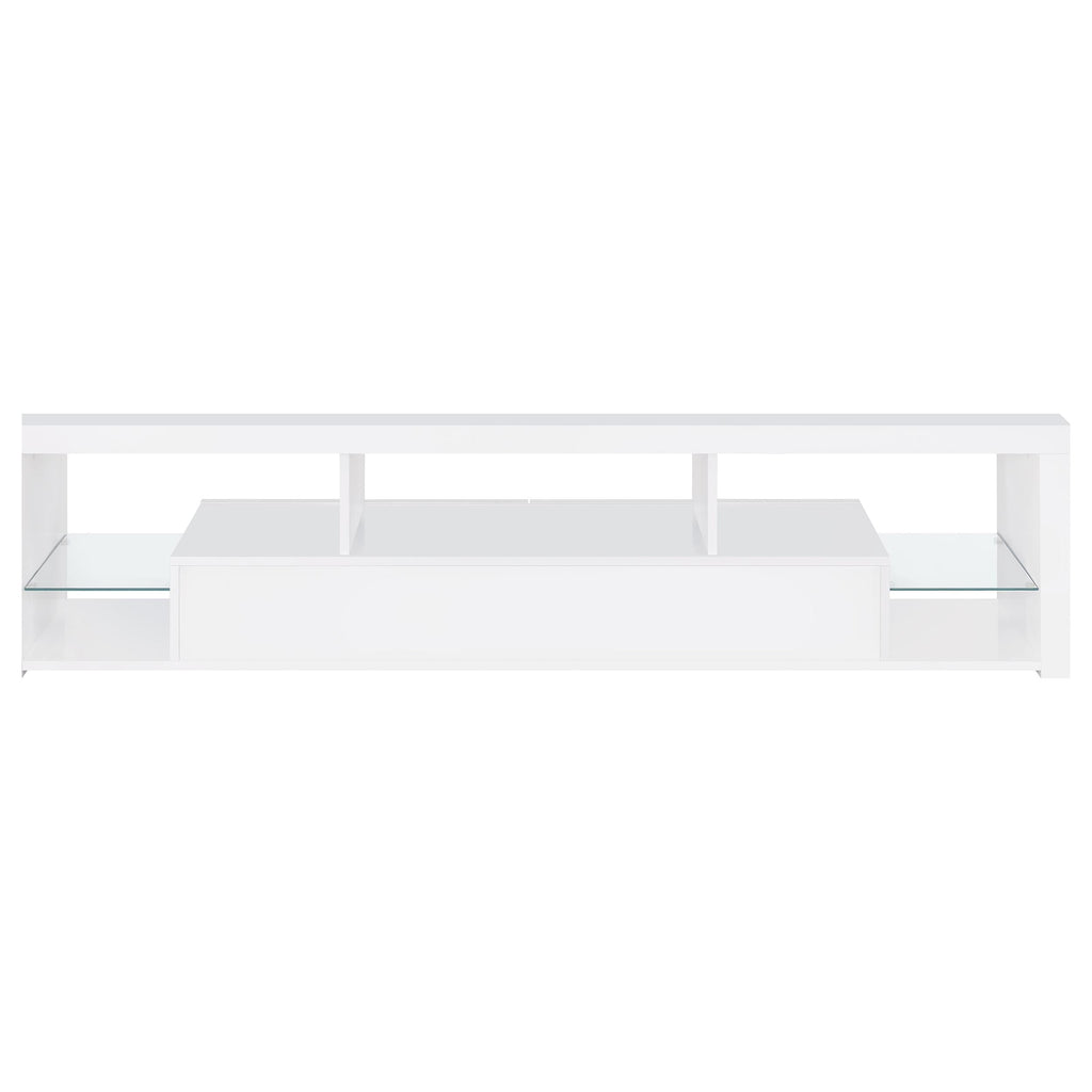 Elevate your entertainment realm with our sleek, modern TV stand. With a pristine glossy white finish and clear glass accents, it exudes elegance. Beyond looks, it's the epitome of functionality. Soft-close drawers glide effortlessly, housing your gadgets, while the glass shelves offer a stylish display. Spacious storage compartments keep your media essentials neatly organized. This stand, a harmonious blend of style and function, becomes an indispensable centerpiece for any contemporary entertainment space. Key Features: • Sleek, modern TV stand with pristine glossy white finish and clear glass accents • Soft-close drawers glide effortlessly, housing your gadgets • Glass shelves offer stylish display • Spacious storage compartments keep media essentials neatly organized • Harmonious blend of style and function for any contemporary entertainment space