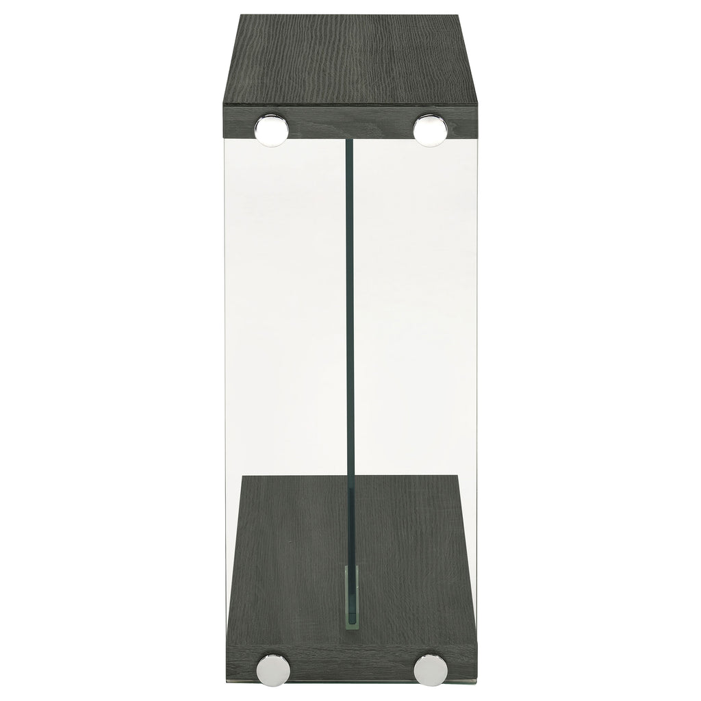 This C-shaped side table combines modern design with practical functionality, making it a versatile addition to your living space. Featuring a weathered grey engineered wood top and base, it exudes a contemporary woodgrain texture. The clear tempered glass frame enhances its sleek aesthetic while providing sturdy support. Perfect for small spaces, this table easily slides under furniture to save space and add convenience. Use it as a side table, end table, or laptop station for a stylish and functional setup. Key Features: • C-shaped side table perfect for versatile use in living room, office, or compact spaces • Weathered grey engineered wood top offers a rich textured woodgrain design for a modern look • Clear tempered glass frame provides sturdy support while enhancing the table's sleek aesthetic • Smart C-shaped design slides under furniture, saving space and adding convenience in small areas • Durable engineered wood top and base ensure long-lasting stability and reliable functionality • Multifunctional piece ideal as a side table, accent table, or a compact workspace solution