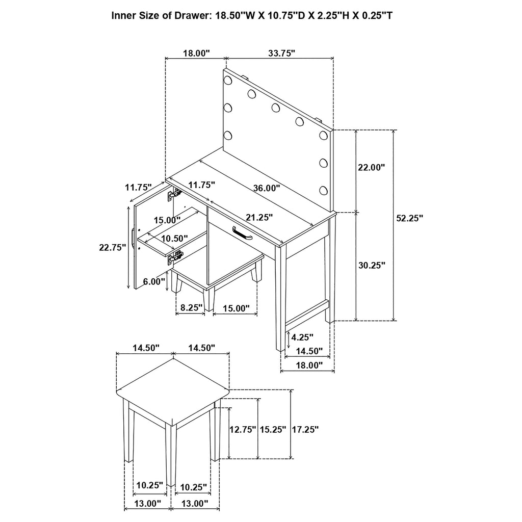 Elijah Makeup Vanity Table with LED Mirror and Stool